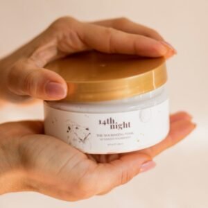 The Nourishing Hair Mask features 14th Night’s proprietary blend of pomegranate, argan, and almond oils uniquely formulated to be extra light and super absorbent.